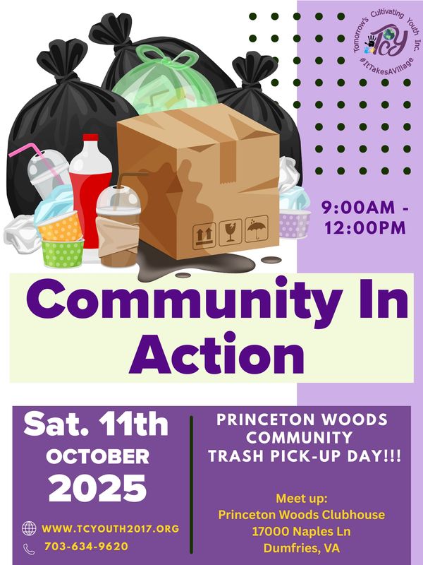 Join TCYouth Inc. as we come together and clean up the Princeton Woods Community, Dumfries, VA!