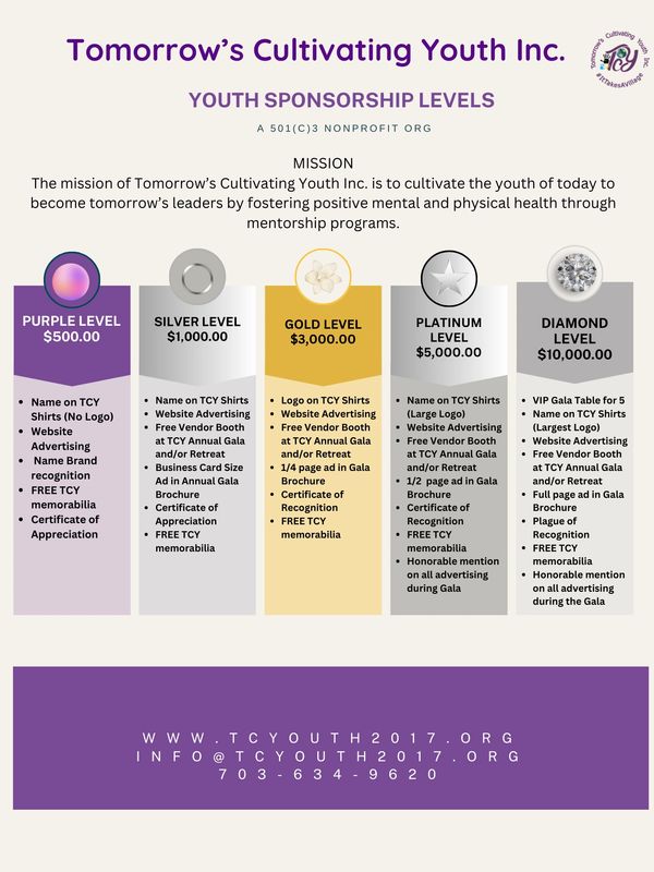 At TCYouth Inc., we believe in empowering the next generation through mentorship, education, leadership development, and community engagement. As a sponsor, you have the opportunity to make a direct and lasting impact on the lives of young people while positioning your brand as a champion for change.