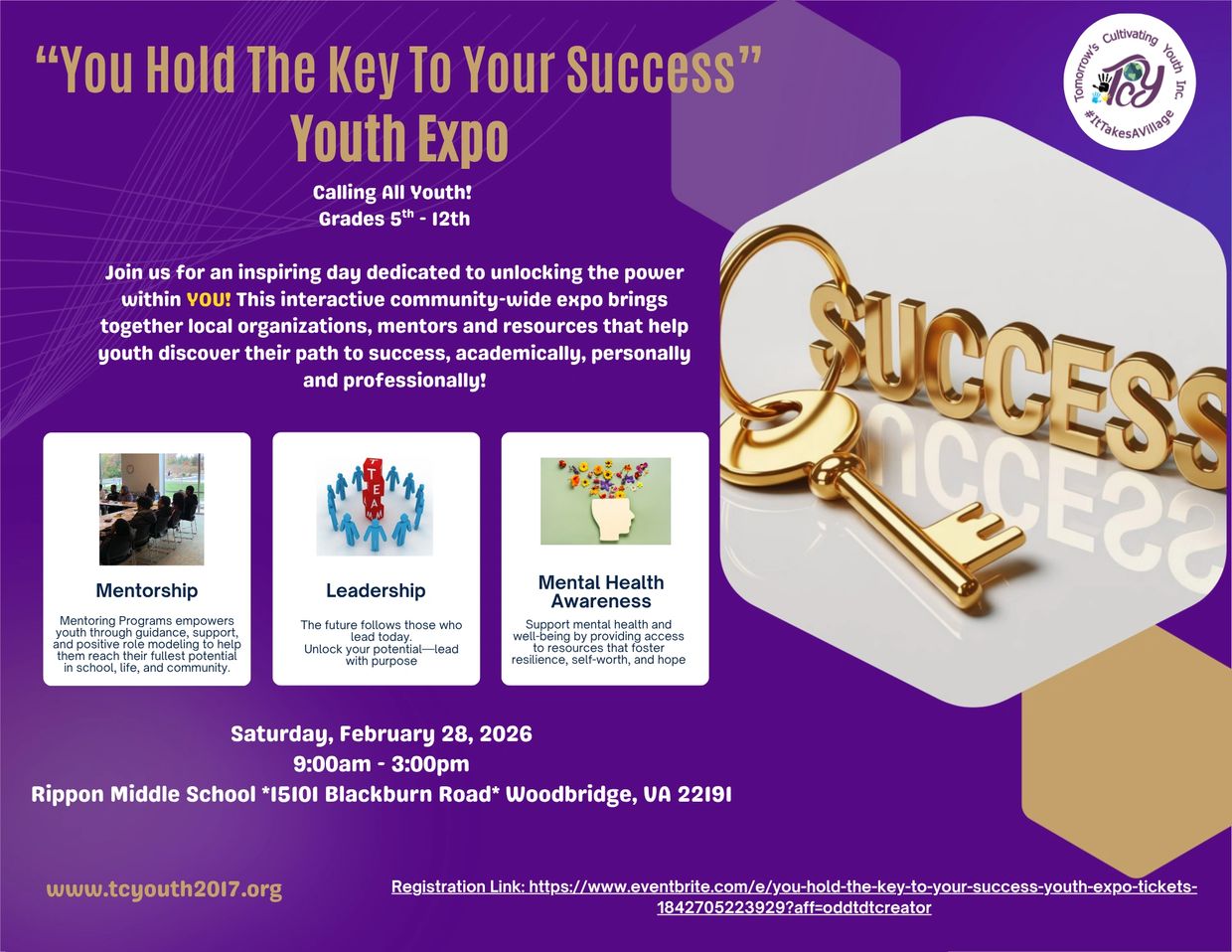 The “You Hold The Key To Your Success” Youth Expo reflects TCYouth Inc.’s ongoing mission to empower youth, strengthen families, and build communities through education, mentorship, and advocacy. By fostering awareness, access, and action, this event aims to inspire a generation of confident, informed, and resilient young leaders.